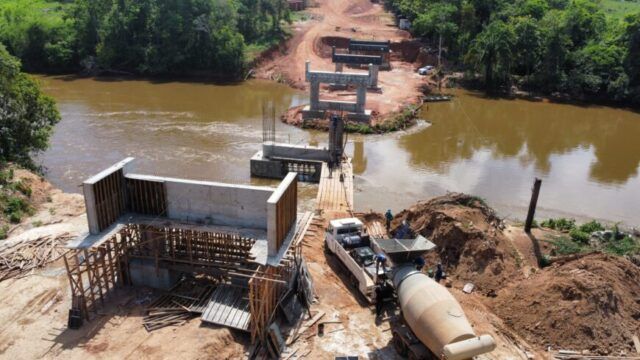 Ponte mista de concreto e aço sobre o Rio Pimenta é construída pelo governo de RO, em Chupinguaia