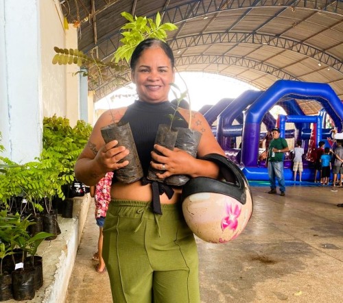 A equipe de poda, roçagem e viveiro da Sema distribuiu 1.300 mudas nativas e frutíferas. Técnicos orientaram moradores sobre o plantio e cuidados com as árvores, com foco na arborização urbana e na preservação ambiental.