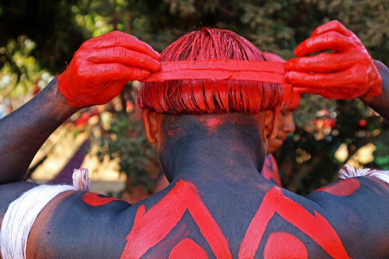 A preparação das tinturas é um processo artesanal, transmitido de geração em geração, e varia conforme os costumes de cada etnia. Elementos como plantas, frutas, sementes e minerais são cuidadosamente selecionados e processados para extrair as cores que adornam os corpos e contam histórias.