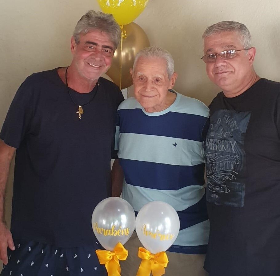 Ao centro, o fundador da bolacha de motor, Américo Rodrigues, ao lado dos filhos Francisco Augusto (à esquerda) e Américo Augusto (à direita). Foto: Américo Augusto/Acervo pessoal