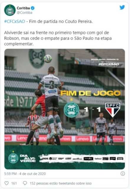 O empate perdurou até o final, resultado que deixou o São Paulo com 20 pontos e o Coritiba com 12.