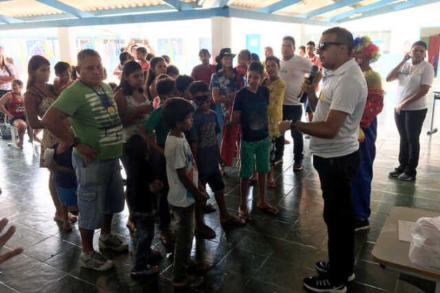 Levando muita alegria e diversão às crianças, a equipe da Caravana da Família realizou na