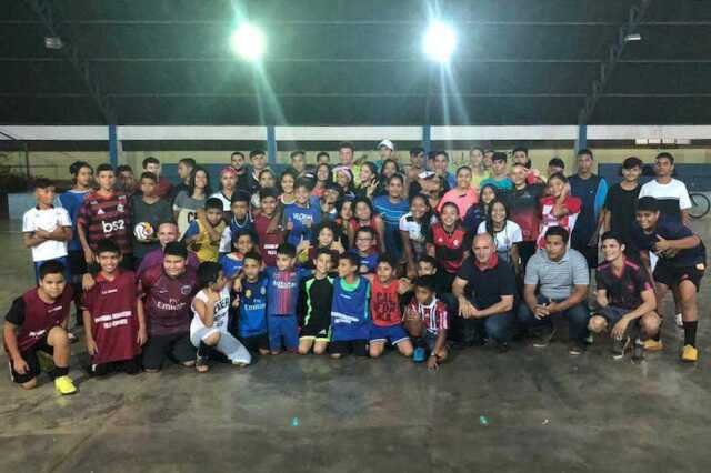 Cerca de 70 crianças carentes que integram uma escolinha de futebol do Projeto Sonhar Nunca