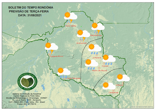 Confira a previsão do tempo para esta terça-feira (31) em Rondônia