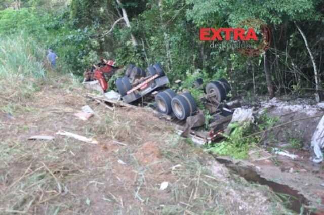 Carreta cai de ribanceira na BR-435 após motorista perder o controle da direção 21 de fevereiro de 2020