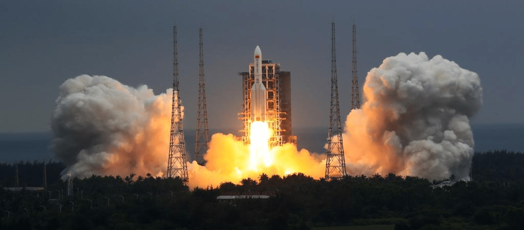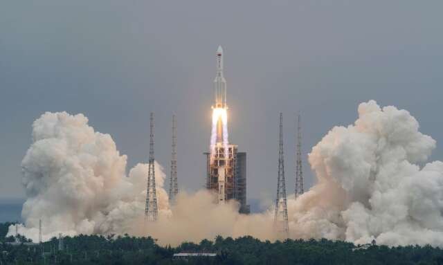 Uma parte dos destroços do foguete chinês Longa Marcha CZ-5B caiu hoje (9) no Oceano