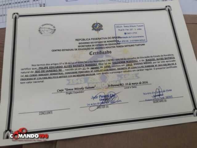 Polícia Civil desmantela quadrilha que falsificava certificados do Ensino Médio, em Ji-Paraná 7 de novembro de 2019
