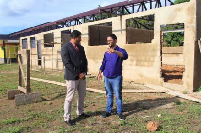 As obras de três novas salas de aula na Escola Municipal Mãe Margarida, no Bairro