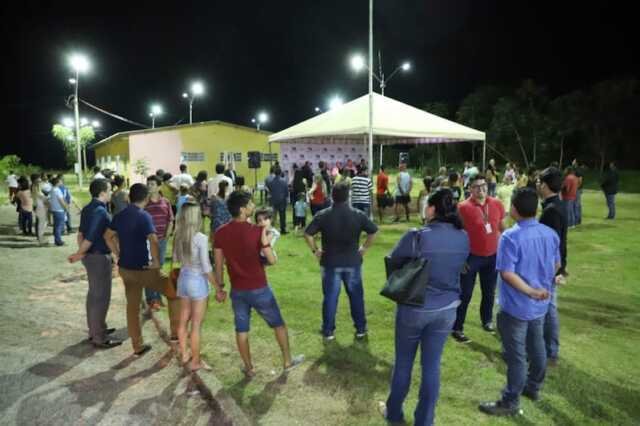 Durante a inauguração da iluminação pública do espaço de lazer e esporte do residencial Cristal