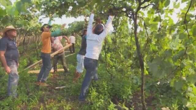 Mais de 30 voluntários se uniram para ajudar reerguer o parreiral de uvas que foi derrubado