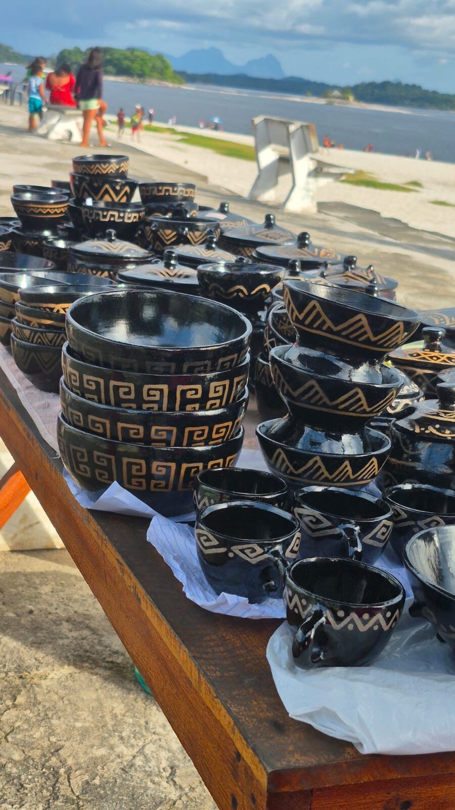 O processo de criação da cerâmica envolve a coleta sustentável da argila, a preparação da massa com pó de caraipé, a modelagem manual, a secagem, o polimento, a queima e, por fim, a pintura com grafismos que contam histórias e celebram a cultura indígena.