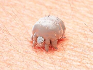 A escabiose, também conhecida como sarna ou pira, é causada pelo ácaro Sarcoptes scabiei, que se instala na camada superficial da pele para se alimentar e se reproduzir. A movimentação da fêmea dentro da pele cria pequenos túneis, causando a coceira característica da doença.
