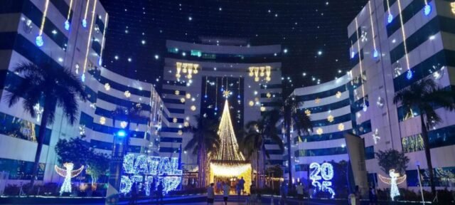 A decoração Natal de Luz do Palácio Rio Madeira (PRM) em Porto Velho, tem encantado os rondonienses que visitam, o já tradicional espetáculo de luzes na sede do governo de Rondônia. Este ano, o evento trouxe um cenário mágico e repleto de simbolismos, enfatizando o período mais esperado do ano. Logo na entrada do Palácio Rio Madeira, o público é recepcionado com letreiro iluminado com os dizeres “Natal de Luz”, o visual natalino ainda se completa com decoração das fachadas e jardins; céu estrelado; uma árvore de 25 metros no centro do pátio, com cascatas de LED com uma estrela no topo.