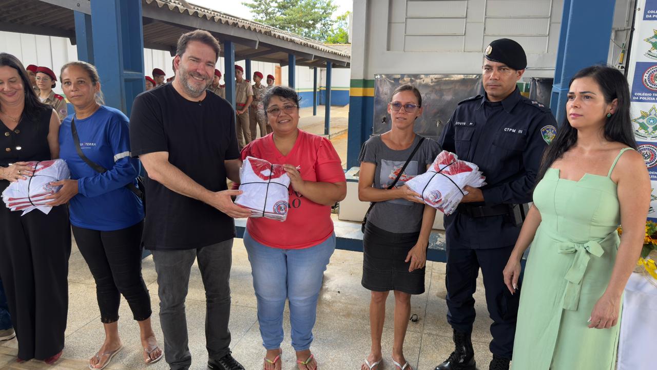 O deputado estadual Alex Redano (Republicanos), prestigiou, nesta quinta-feira, 19, a entrega de 604 uniformes aos alunos do Colégio Tiradentes da Polícia Militar III, em Ariquemes. A ação foi viabilizada por meio de emenda parlamentar no valor de R$ 140 mil, destinada à aquisição dos kits escolares.