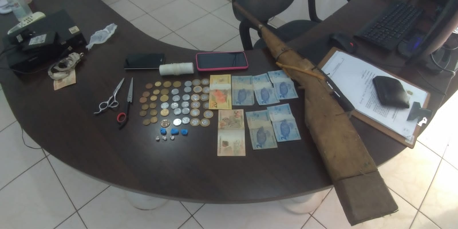 Preso com porções de crack, polícia também encontrou entorpecentes com adolescente, que vendia a mando do suspeito. Dinheiro, arma de fogo e drogas apreendidas com falso pastor