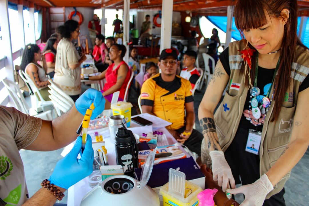 Equipes de pesquisadores da Fiocruz Amazônia e de outras instituições parceiras estão coletando dados clínicos, epidemiológicos e socioambientais, além de amostras biológicas de humanos e animais para rastrear possíveis patógenos. A iniciativa também oferece exames de rotina, como hemograma, teste de glicemia e rastreamento de HPV, que são de difícil acesso para essas comunidades.