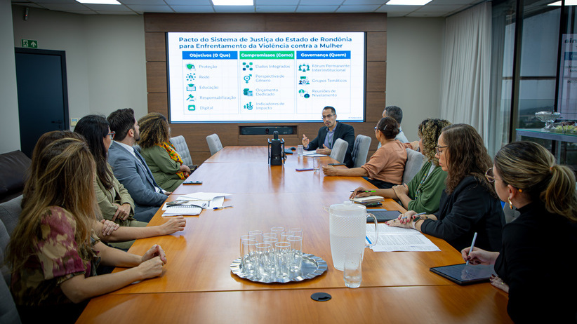 Entre os temas abordados, a equipe tratou da integração das ações do Governar ao Pacto do Sistema de Justiça do Estado de Rondônia para Enfrentamento da Violência contra a Mulher, firmado pelo Tribunal de Justiça (TJRO), Ministério Público (MPRO), Defensoria Pública (DPERO), Procuradoria-Geral do Estado (PGERO) e Tribunal de Contas (TCERO).