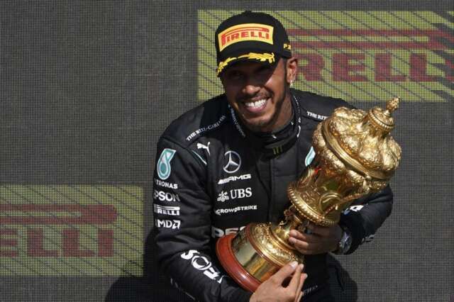 O heptacampeão mundial comemorou sua oitava vitória em casa neste domingo (18), após superar uma punição de 10 segundos por uma colisão na primeira volta que terminou com o rival Max Verstappen no hospital.