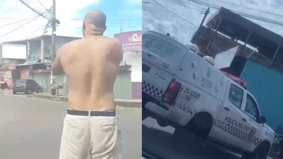 Os vídeos que circulam em grupos de aplicativos de mensagens instantâneas mostram o momento em que o homem é atingido pelo disparo.