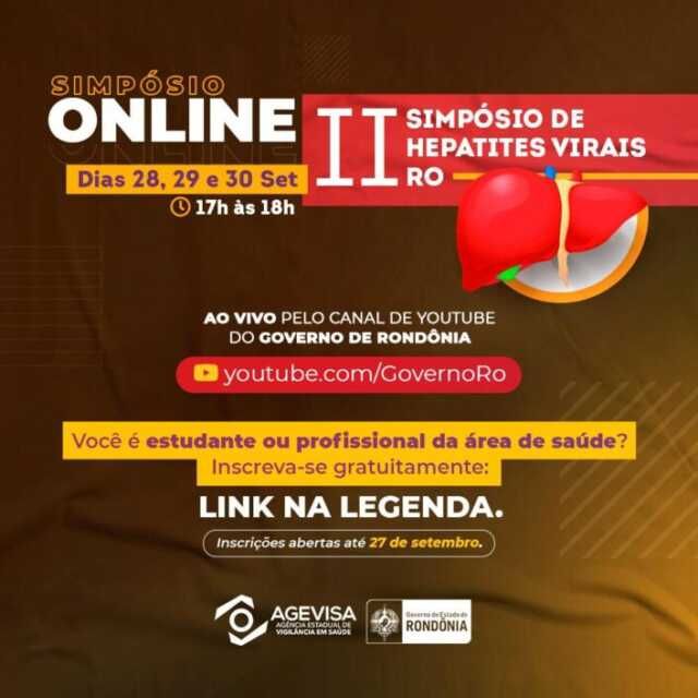 Nesta segunda-feira (28), às 17h, o Governo de Rondônia realiza o II Simpósio sobre Hepatites Virais em Rondônia.