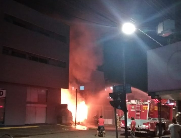 Local armazenava diversos materiais inflamáveis sendo necessário aproximadamente 1h30 para conter totalmente o fogo, na Rua Santos Dumont. Incêndio destrói loja de peças automotivas em Macapá