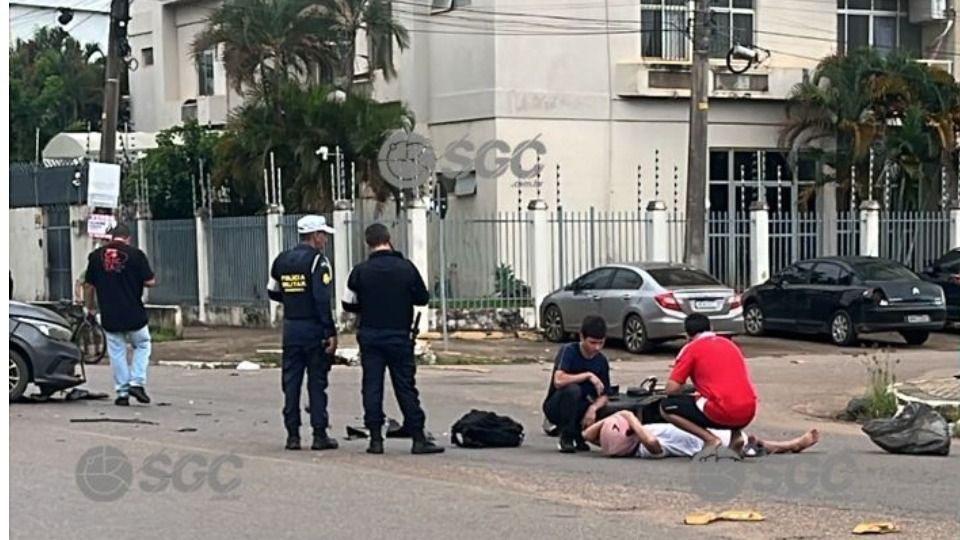 Um motociclista foi arremessado no chão após colidir lateralmente com um carro na Avenida Rio de Janeiro, em Porto Velho (RO). O acidente ocorreu no cruzamento com a Rua Eduardo Lima e Silva, próximo ao supermercado Irmãos Gonçalves. A condutora do carro permaneceu no local e prestou esclarecimentos à polícia.