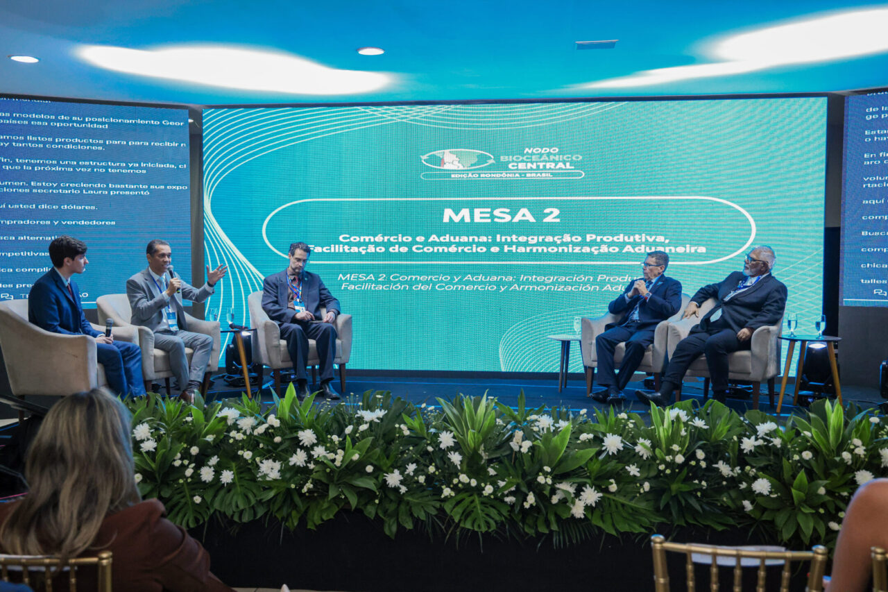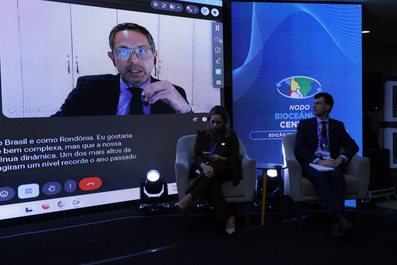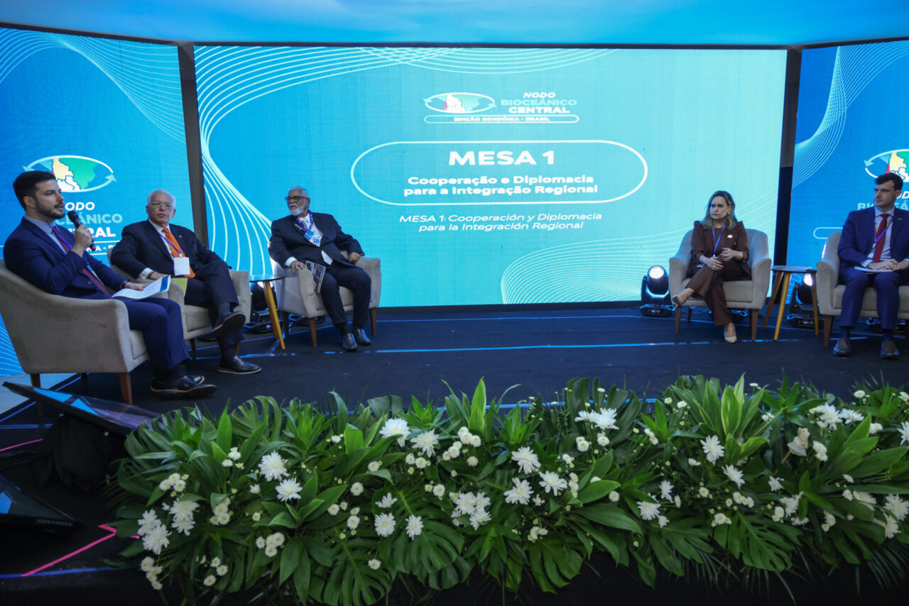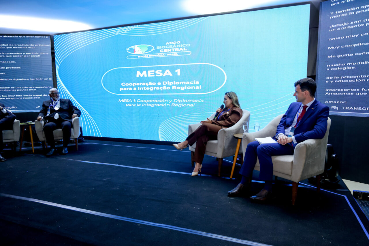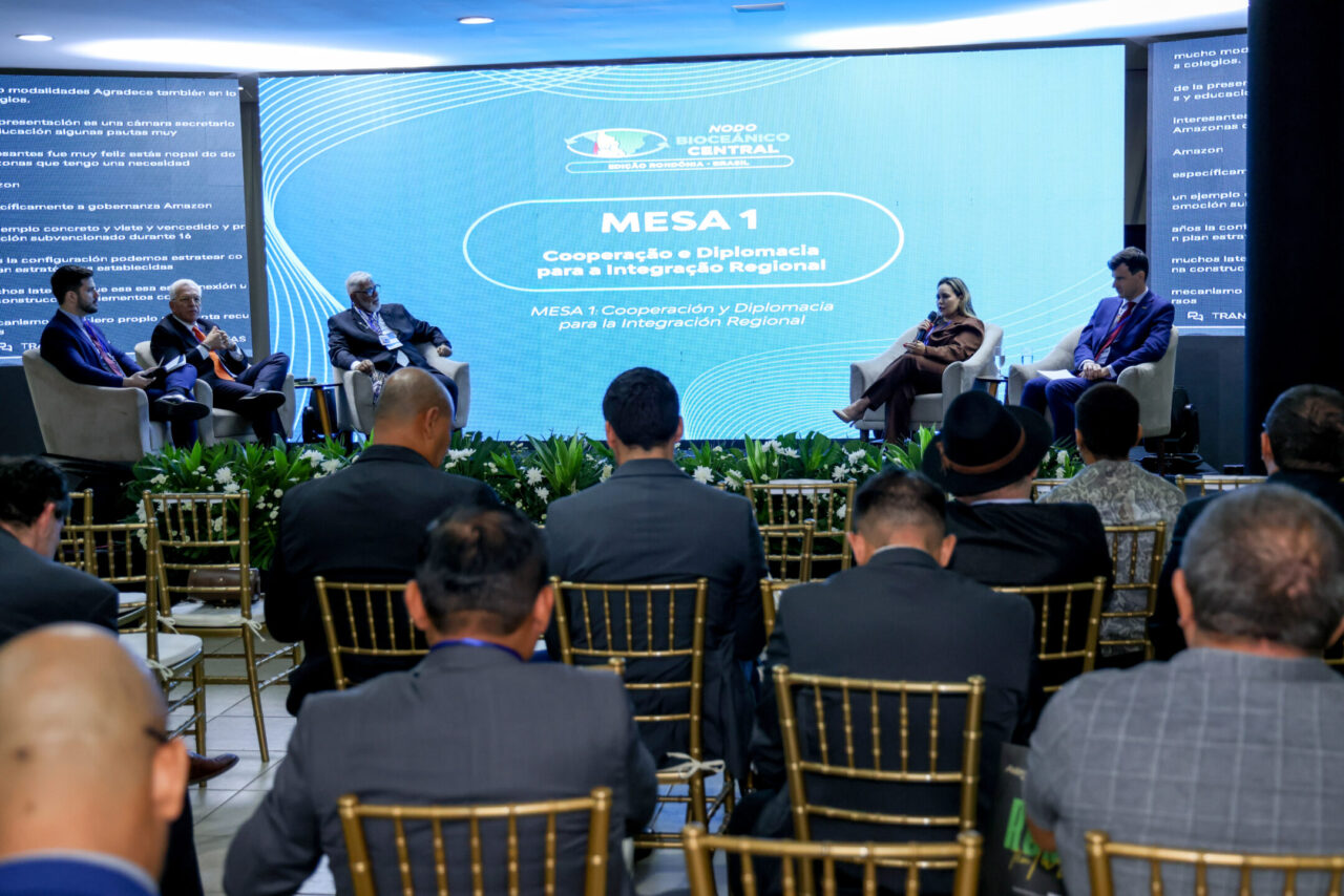 Porto Velho sediou, na quinta-feira (5), o segundo dia da edição Rondônia Brasil do Nodo Bioceânico Central, reunindo o governo do estado, o governo federal e os governos da Bolívia, Chile e Peru para alinhar ações voltadas à integração logística e de infraestrutura, ao desenvolvimento econômico e à consolidação de novas rotas de escoamento da produção com acesso ao Oceano Pacífico. A programação do dia contou com painéis, mesas temáticas e reuniões simultâneas entre governadores e e representantes do Ministérios do Desenvolvimento e Ministério de Integração, voltadas à tomada de decisões estratégicas para a integração regional entre as nações.
