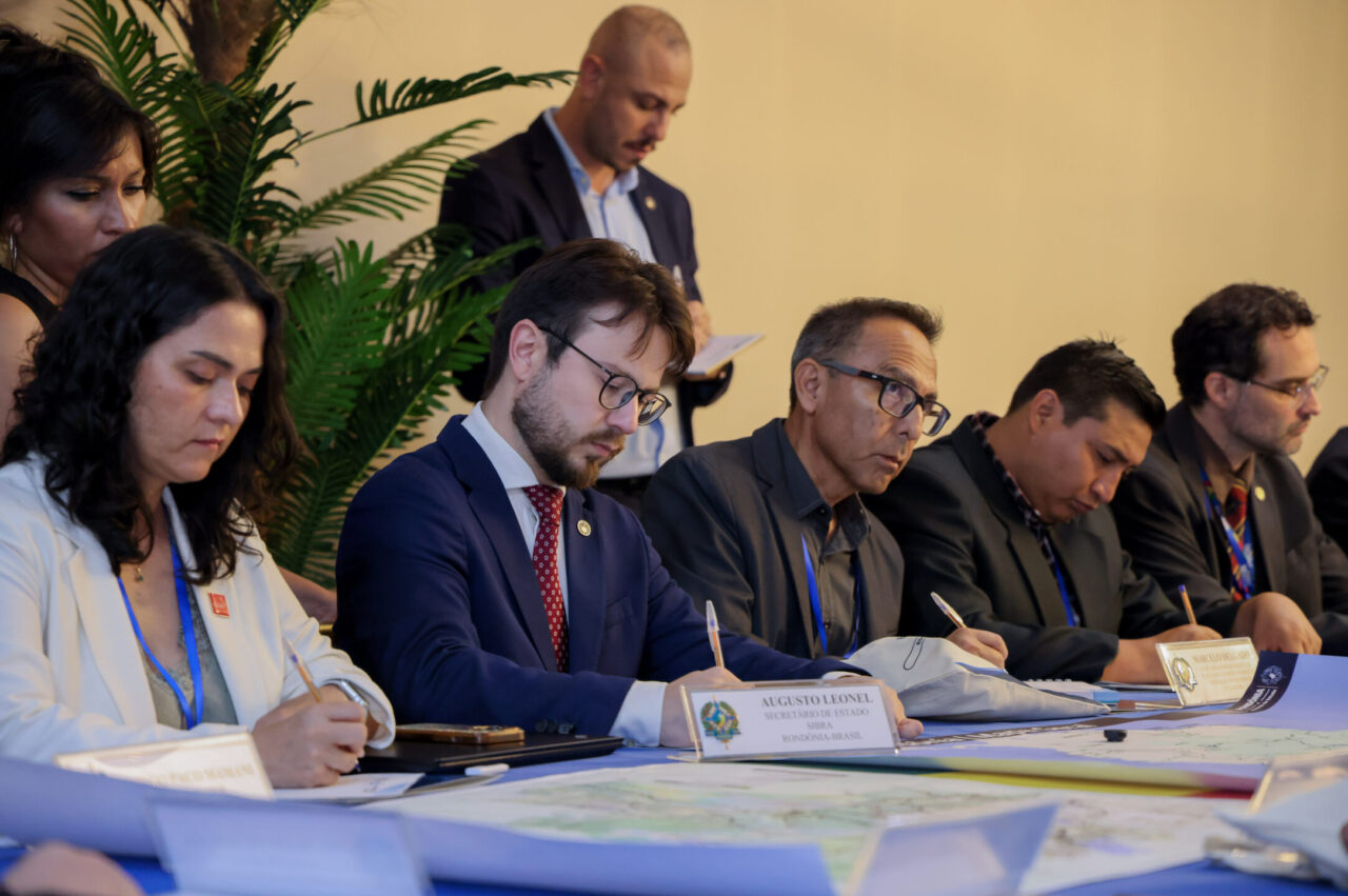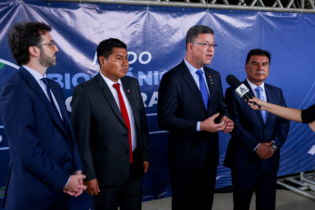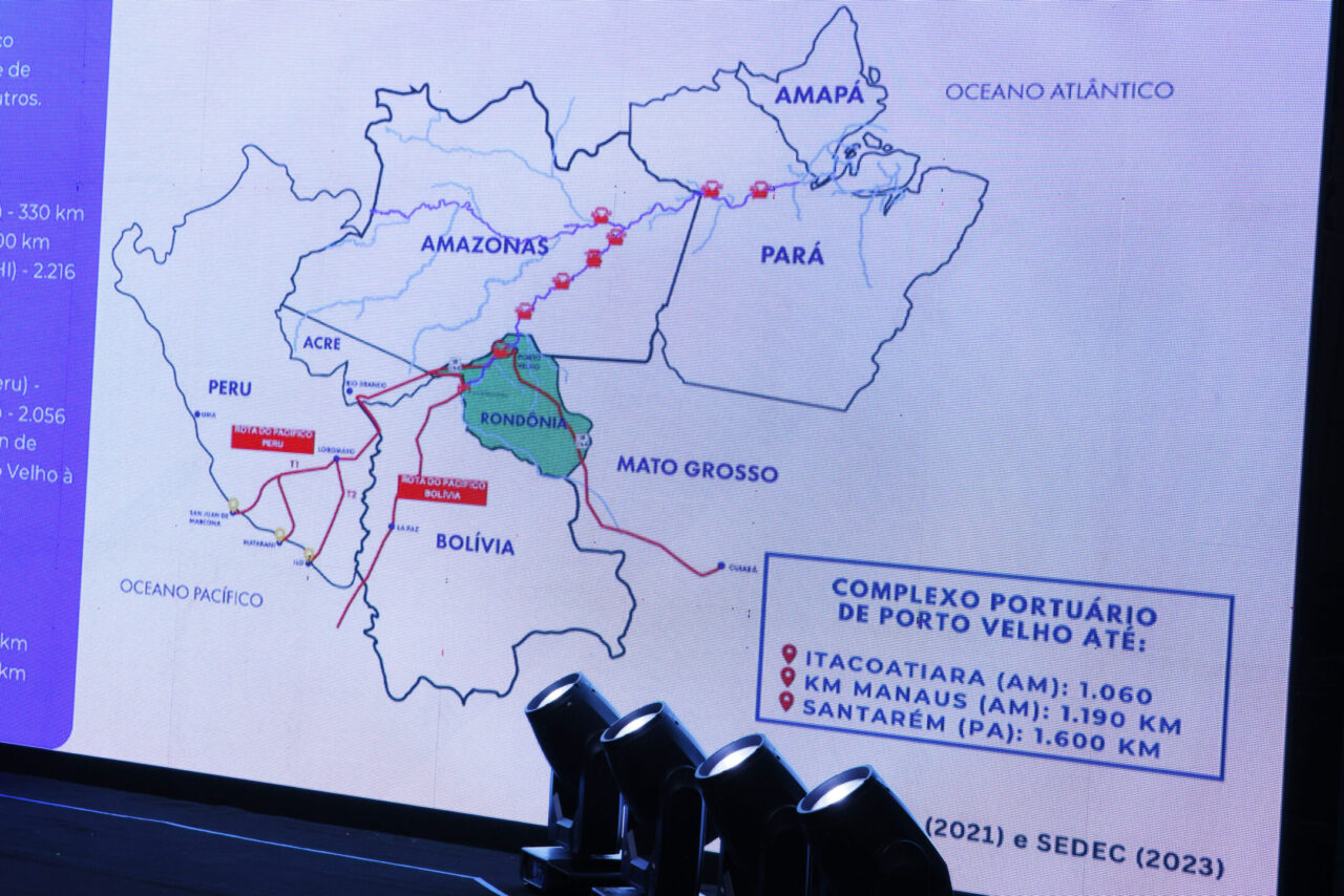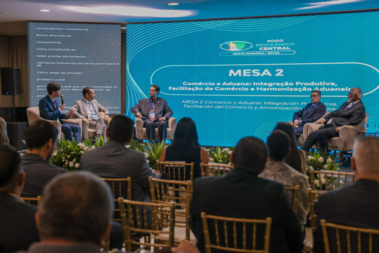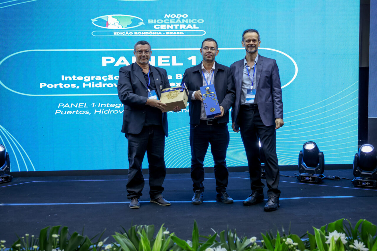 Porto Velho sediou, na quinta-feira (5), o segundo dia da edição Rondônia Brasil do Nodo Bioceânico Central, reunindo o governo do estado, o governo federal e os governos da Bolívia, Chile e Peru para alinhar ações voltadas à integração logística e de infraestrutura, ao desenvolvimento econômico e à consolidação de novas rotas de escoamento da produção com acesso ao Oceano Pacífico. A programação do dia contou com painéis, mesas temáticas e reuniões simultâneas entre governadores e e representantes do Ministérios do Desenvolvimento e Ministério de Integração, voltadas à tomada de decisões estratégicas para a integração regional entre as nações.