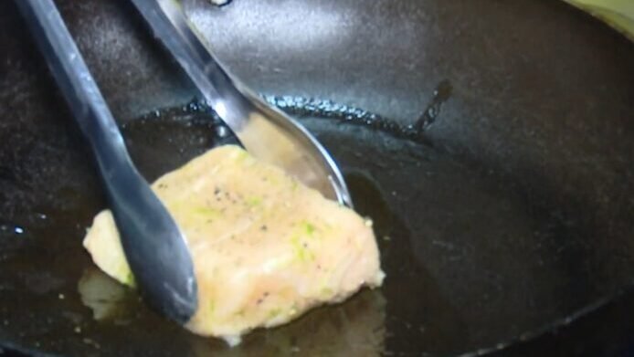 Para o preparo do pirarucu, a chef sugere temperar o filé com sal, pimenta do reino e raspas de limão, selando-o em frigideira com azeite e finalizando o cozimento com um pouco de água. O molho pesto de jambu é feito com jambu fervido, chicória, pimenta de cheiro, azeite, limão, castanha do brasil e queijo parmesão ralado.