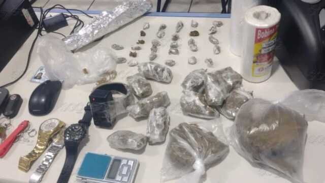 Ação policial resulta na prisão de indivíduo em posse de substâncias ilícitas e outros materiais.