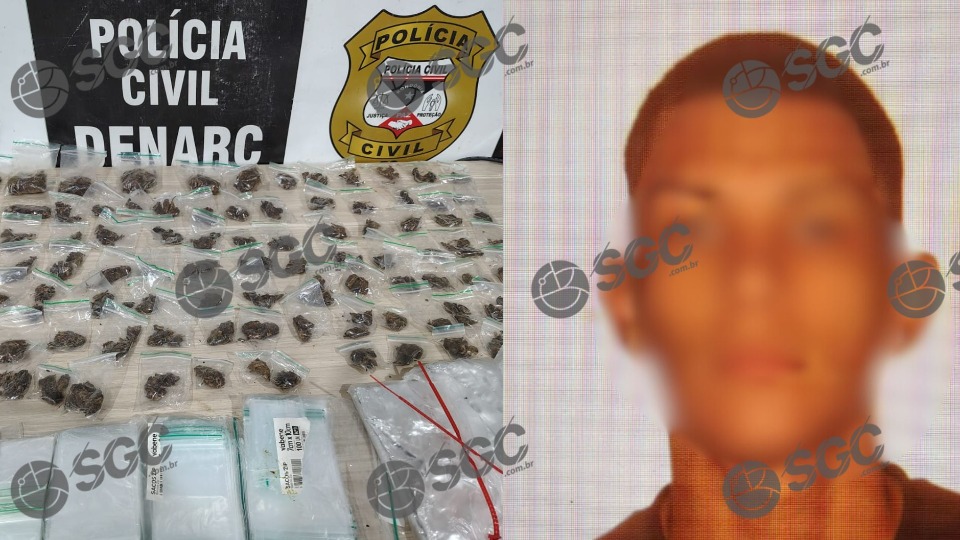 O suspeito foi preso em flagrante por tráfico de drogas e uma usuária foi levada como testemunha. Ambos foram levados para o Denarc para as devidas providências.