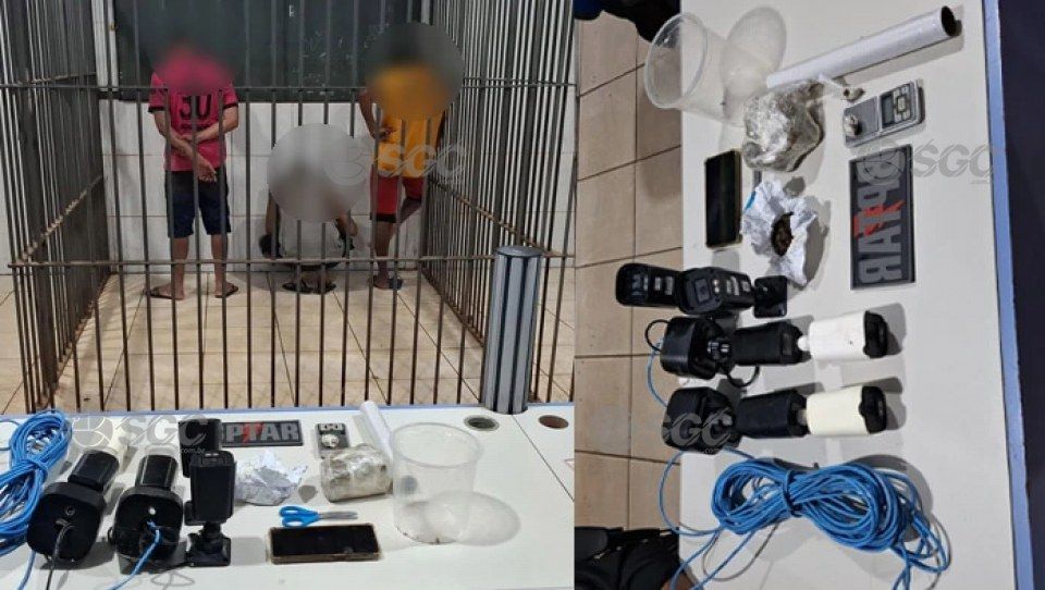 Três homens, com idades de 27, 32 e 50 anos, foram detidos após resistência. A polícia apreendeu 270 gramas de maconha, uma balança, aparelhos celulares, uma televisão e seis câmeras de vigilância.