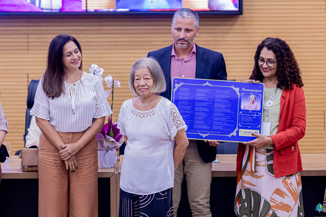 Durante o evento também foi apresentado o selo comemorativo dos 20 anos da Agevisa, entregue aos profissionais da instituição. A solenidade também contou com uma homenagem especial à médica Kazue Narahashi, reconhecida pelo trabalho dedicado e sensível no atendimento às pessoas acometidas pela hanseníase em Rondônia, com a entrega de uma placa de gratidão pela causa.