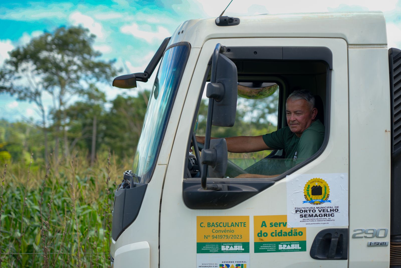 O sol das nove da manhã já começa a castigar a pele, mas para Gildázio de Souza Hermogenes, motorista de 65 anos, o calor é apenas um companheiro de longa data. Sentado ao volante de uma caçamba Volvo da prefeitura de Porto Velho, ele preenche a quilometragem inicial de 5.300 km no relatório.