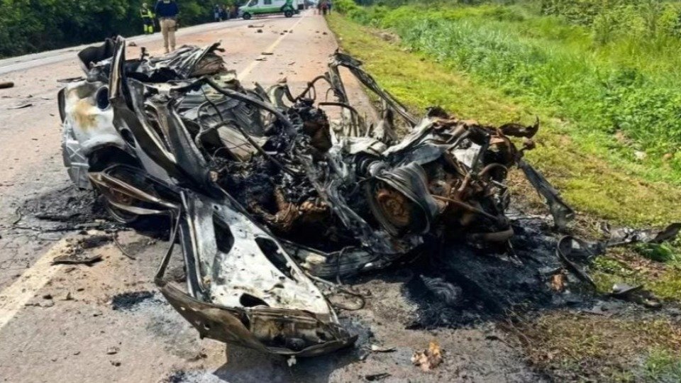 As vítimas estavam dentro do carro quando ele pegou fogo. A Polícia Rodoviária Federal investiga as circunstâncias do acidente.