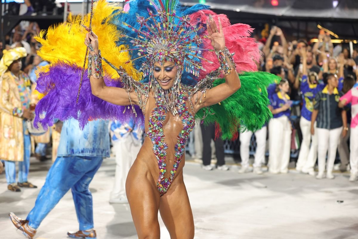 A apresentadora voltou a desfilar pela Vila Isabel e, gente, ARRASOU! A fantasia colorida realçou a boa forma e ela cruzou a Sapucaí com um sorriso de orelha a orelha, mandando beijos para os fotógrafos.