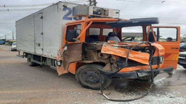 Caminhão atinge van escolar com alunos na BR-364 em RO