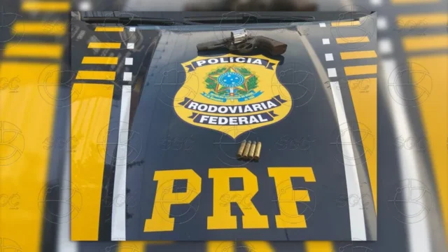 PRF intercepta carro em alta velocidade e apreende arma na BR-364
