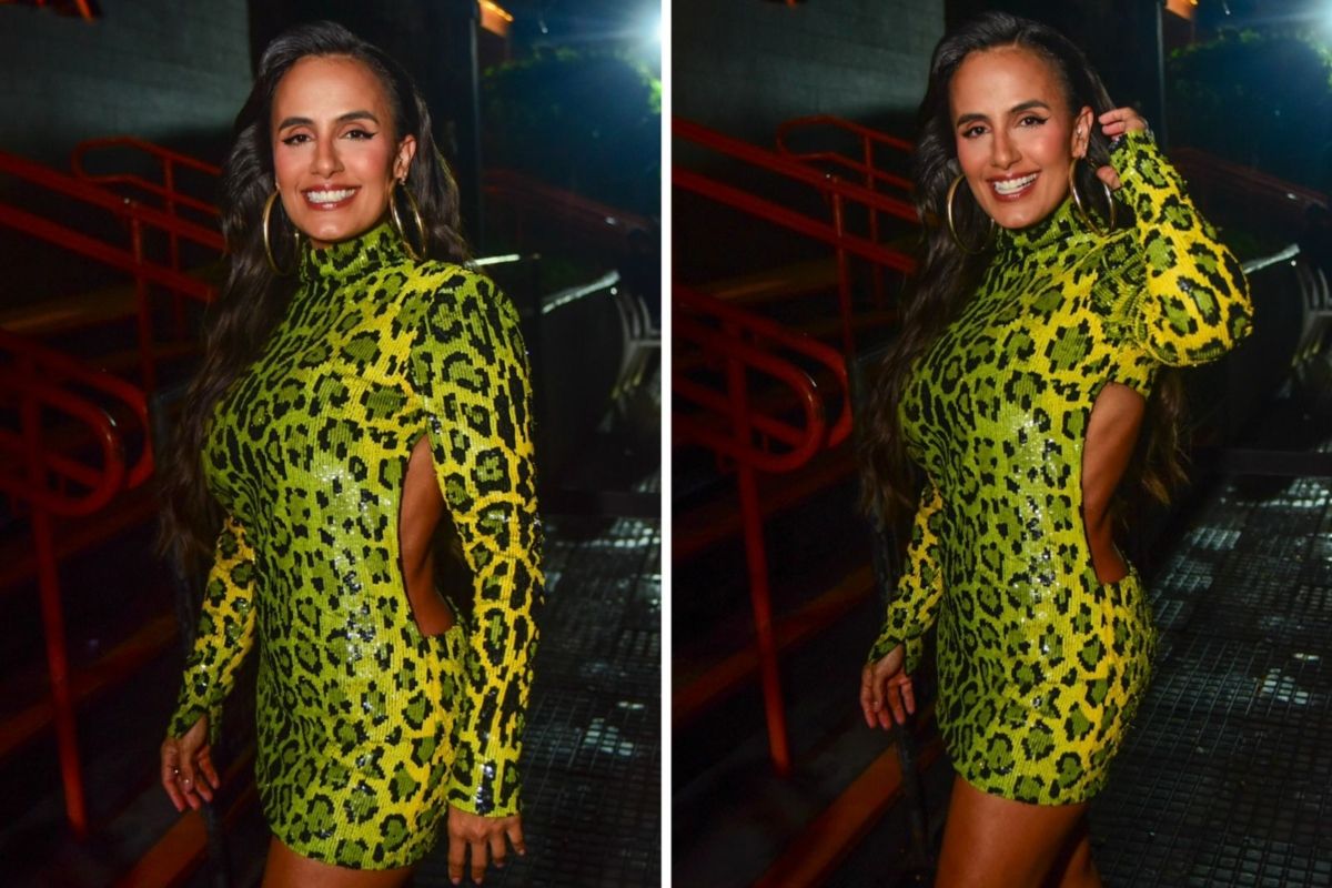 Thiaguinho apostou em um visual sofisticado com calça cinza, camisa branca e colete Louis Vuitton, avaliado em cerca de R$ 11,6 mil. Carol Peixinho chamou a atenção com um vestido curto verde-limão com estampa de onça.