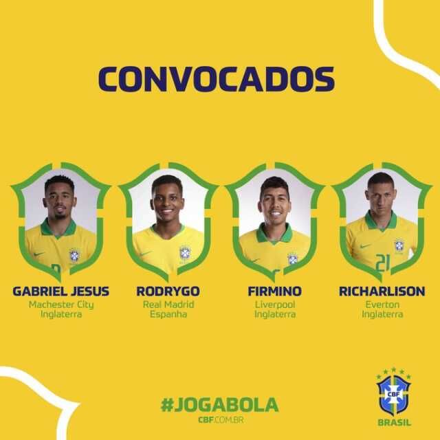 Além de Gabriel Menino, outros quatro atletas que atuam no futebol brasileiro foram convocados: os goleiros Santos (Athletico-PR) e Weverton (Palmeiras), o zagueiro Rodrigo Caio (Flamengo) e o meia Éverton Ribeiro (Flamengo).