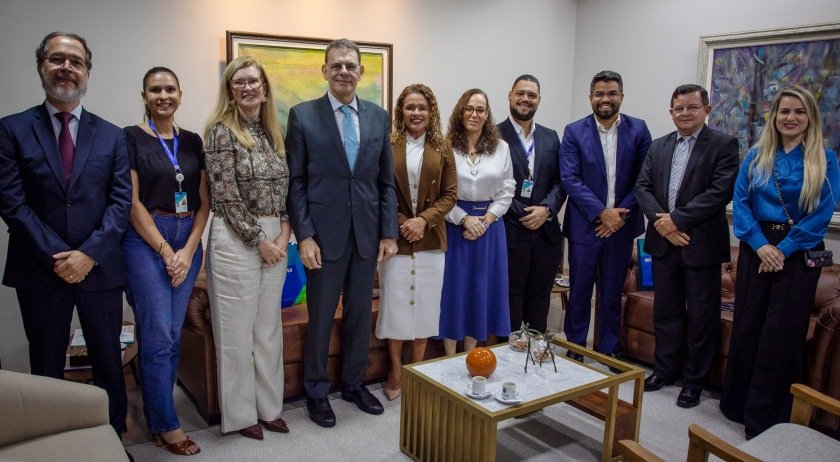 Outra comitiva recebida pelo presidente do TJRO foi a da Caixa, composta por Ione Wesley Pereira da silva, superintende da rede caixa Rondônia, Marta Helena Castro, superintende de governo da Caixa, Dassayev Dyangelhes Lourenço, gerente-geral da agência Nações, Édson Bernardo, advogado da instituição e Juliana Lemos, assistente jurídico de governo.